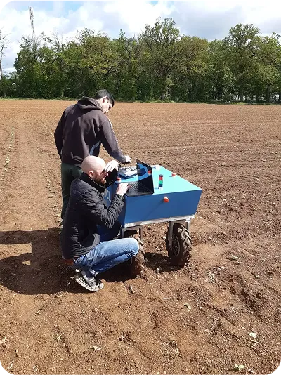 Les équipes robotiques et systèmes embarqués développent les lois de commande des robots et de leurs outils afin d’assurer une précision millimétrique des actions de désherbage.