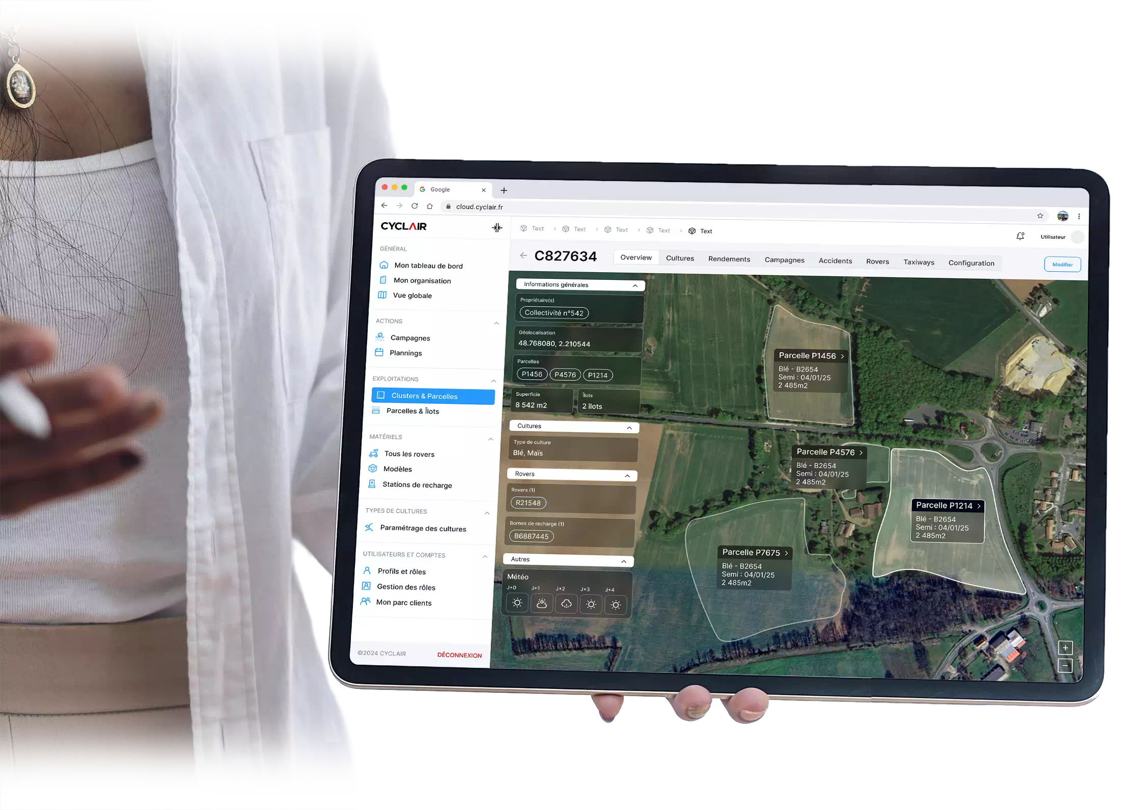 Le robot est connecté au Cloud Cyclair en permanence et échange des informations agronomiques d’une grande valeur (statistiques d’envahissement, stade des cultures, alertes ravageurs ou maladies).